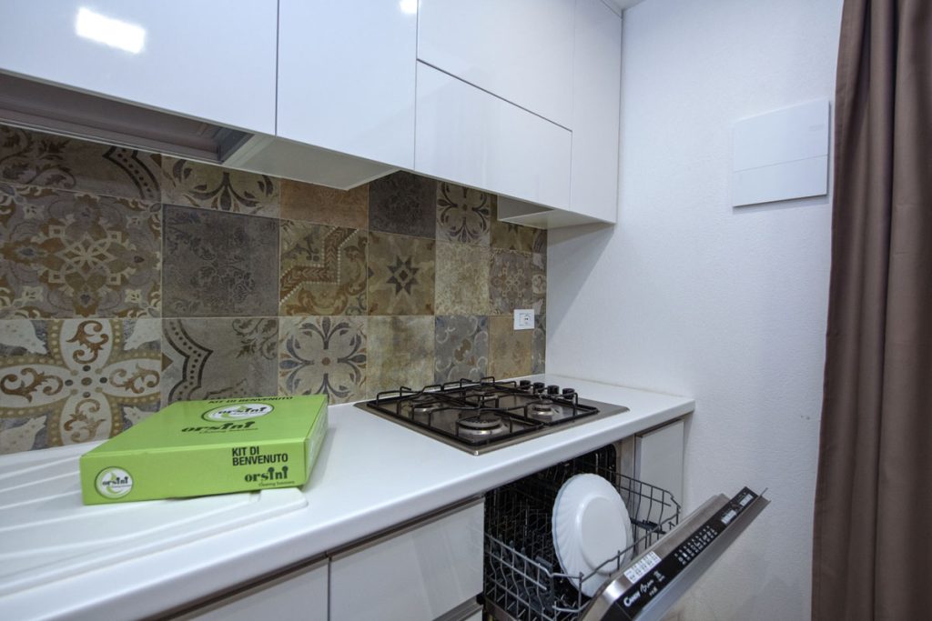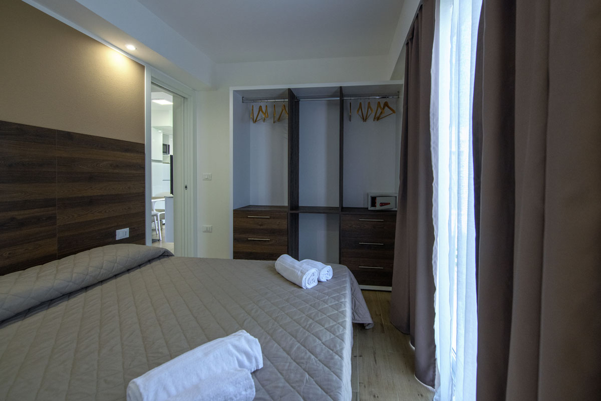 Gli alloggi sono dotati di climatizzatore a soffitto a cassetta con la diffusione in tutti gli ambienti, TV 43 pollici e cassaforte. L’alloggio ha finiture di pavimentazione e rivestimenti in gres porcellanato. La trasmittanza termica ed acustica conferisce miglior confort all’abitazione. La veranda esterna ha una superficie di 10,5 mq.