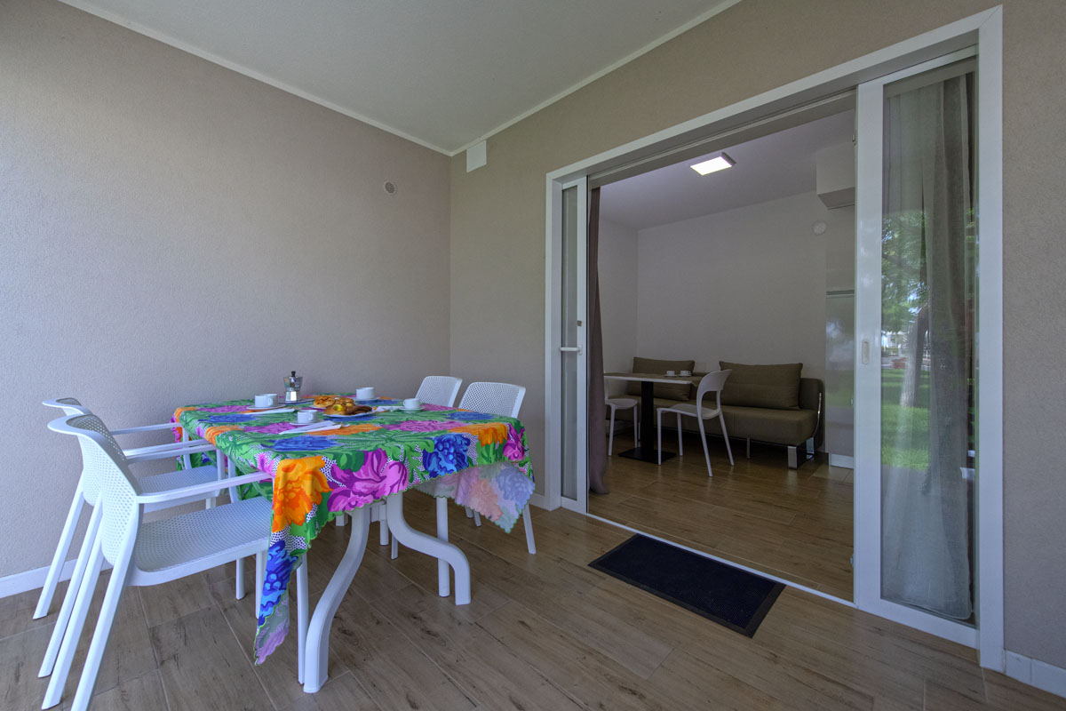 Trilocale di 48,5 mq (38 m² interni e 10,5 m² di veranda) può ospitare 4+1 persone.
